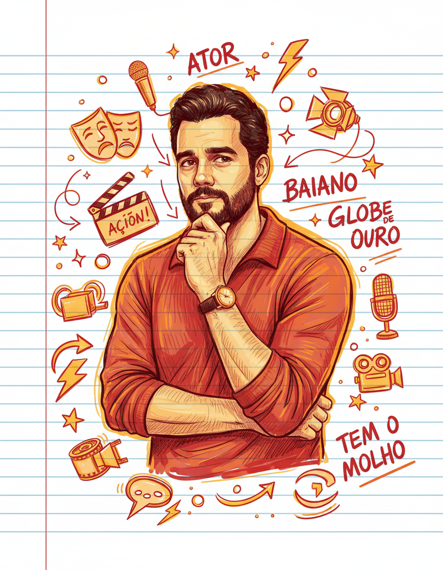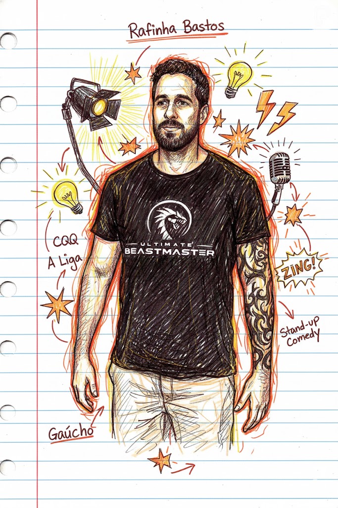 Personagem central em destaque, em estilo ilustrado com hachuras e traços de caneta e marcador.